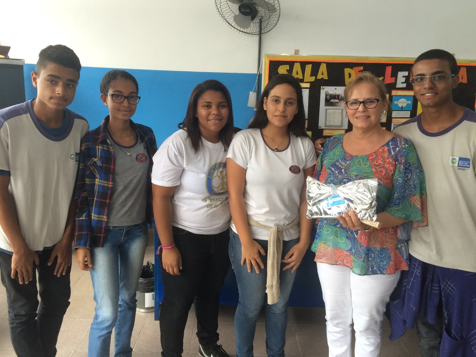 Às treze horas visitamos o C.E.Fernando Magalhães onde funciona o Interact Club para conversarmos com os jovens e tomarmos conhecimentos das ações realizadas por eles junto com as professoras Marisa, Lídia e rotarianos. Os Interactianos montaram um mural com todas as doações e atividades realizadas.